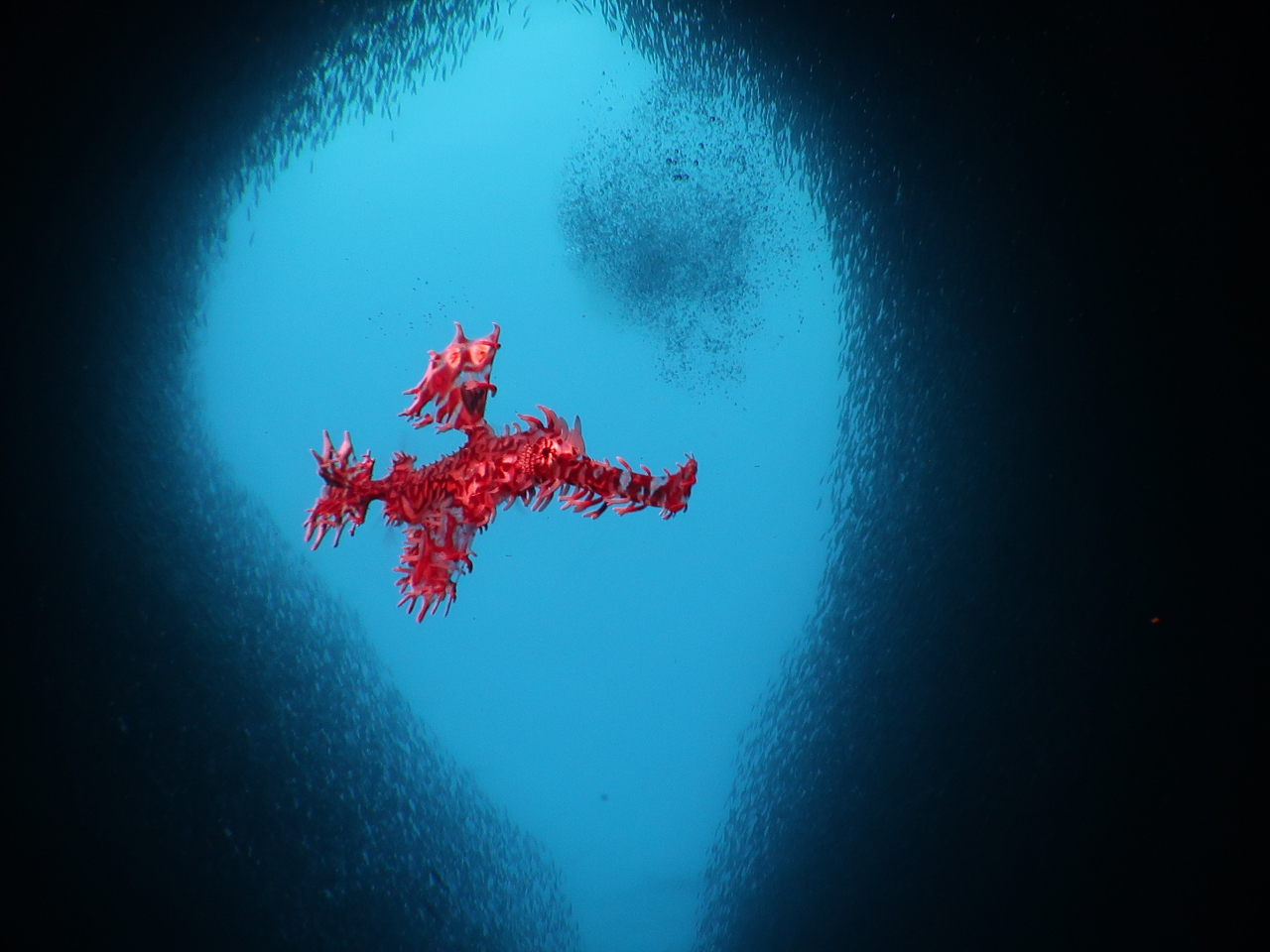 イワシの大群とニシキフウライウオ