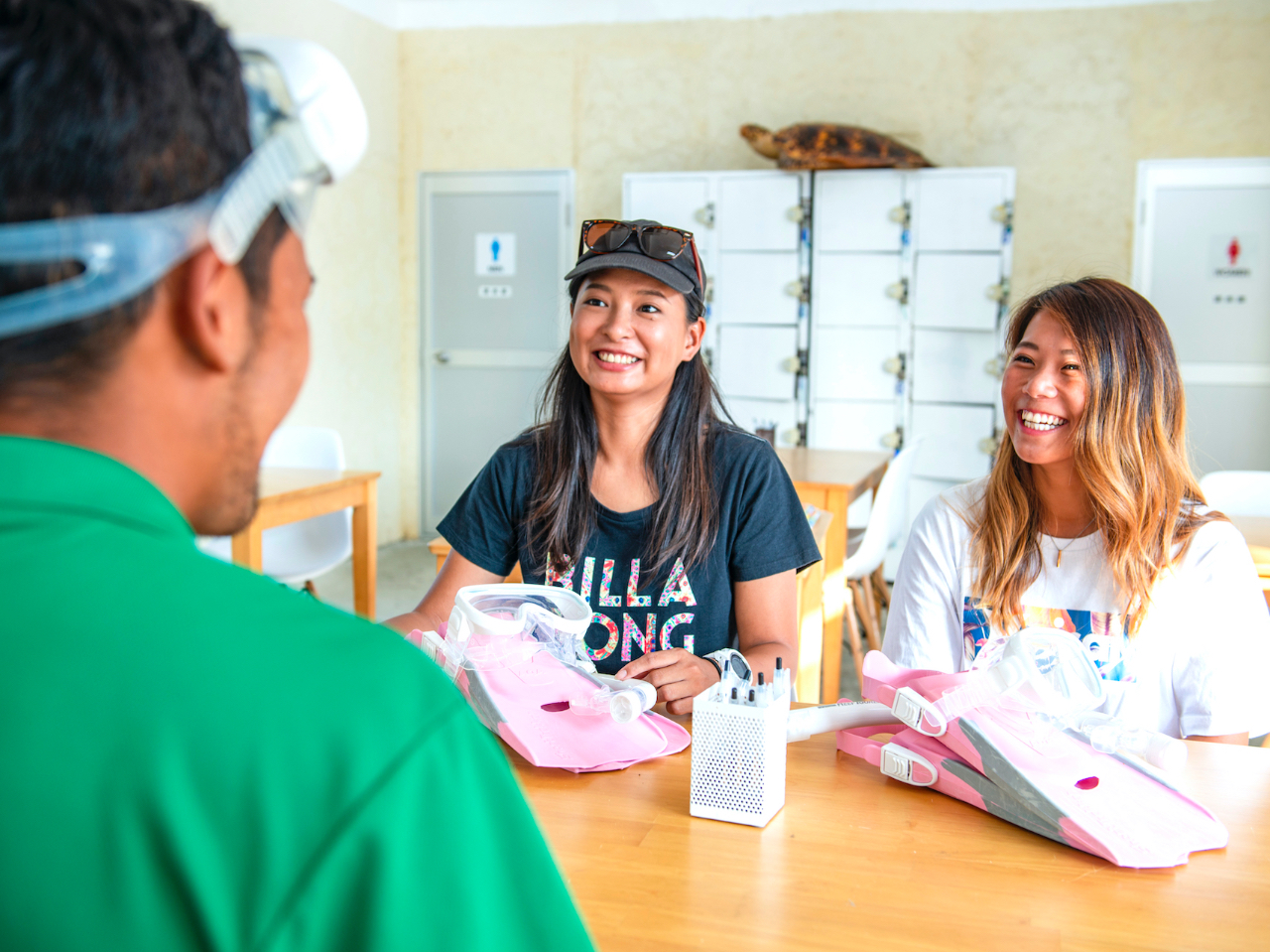 憧れのウミガメと泳ぐツアー!泳ぎに自信がない方でも存分に楽しめるツアーです。このツアーでは、比較的浅い水域でウミガメとの出会いを実現しています。初心者や子供たちも安心して参加できるよう、専門のインストラクターが丁寧に指導します。さらに、すべてのガイドはPADI認定のスノーケルインストラクターの資格を有しており、安全で快適な体験を提供いたします。