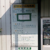 | 飲食施設 | 食堂休憩室:あり 各種弁当:当日朝に要予約 売店:カップラーメン、焼きソバ、ガム、コーヒー&ジュース、釣りエサ等 |
