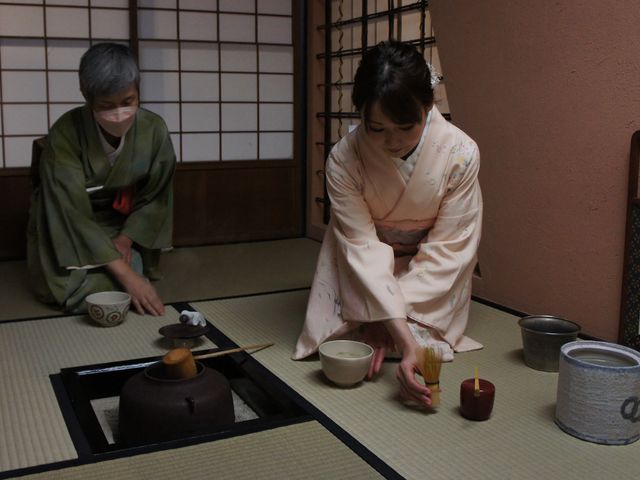 ひがし茶屋街の路地にある古民家の小さなお茶室です。茶道体験というと怖そうに思いますが優しいお師匠からお点前をいただき後に自分で点てられます。わからないこともとても聞きやすいです。大人数の茶会ような点て出し、点てたものを運ぶだけと違い目の前で点ててもらうのはやはり気持ち良い緊張感あります。主菓子も美味しい、ただお干菓子は硬いので気をつけて。わたくしも歯が悪いので機会があればお干菓子の辞退の仕方を教わろうと思います。体験日は喫茶コーナー含め相席は欧米の方ばかりでした。最寄バス停橋場町からはスカート姿だと10分程かかり景観保存地区ため目立つ看板無く少し探すかもしれません。お約束の時間には余裕持って参りましょう。