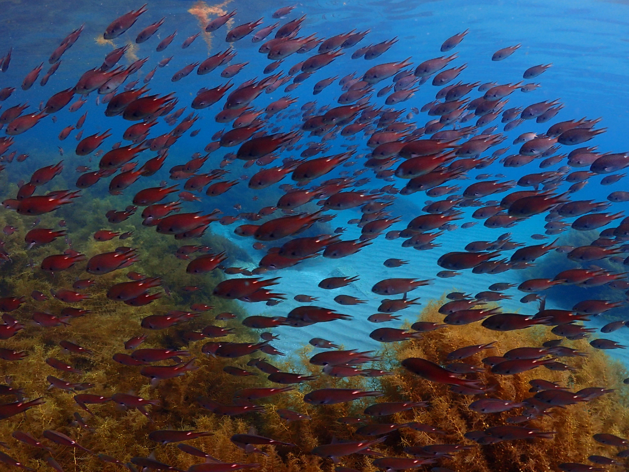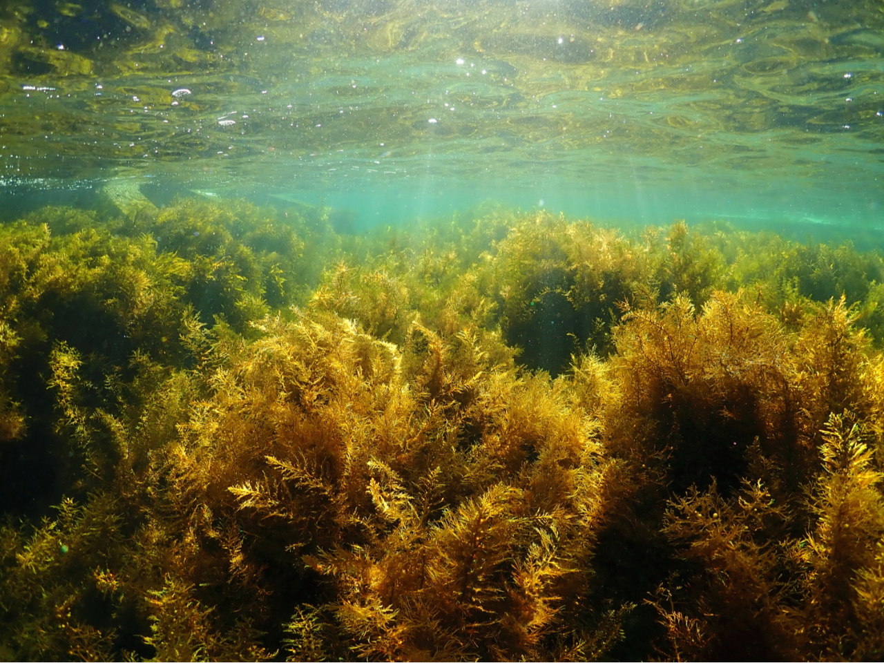 明るい日差しと海藻林