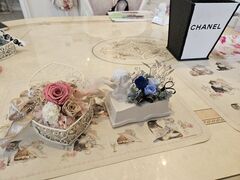 初めて伺いました。少しだけ道には迷いましたが、素敵なところでした。駐車場があったのも嬉しいポイントでした。ウエディングフォトで小物の持ち込みが可能なのでせっかくなら2人で作りたいと思い今回彼と2人で参加しました。先生はキレイで話しやすく親切で説明も分かりやすいかったです。お話しが楽しくて緊張がほぐれてきて自分が作りたいと思うものを追及して作れました。写真もたくさん撮ってくださったり、アドバイスもしてくださり、2人ともすごく素敵なものが出来ました。結婚式での両親へのプレゼントとしてまたこちらで作ってプレゼントしたいなと感じました。制作後もお話ししたり、カタログを見せてくださったり、紅茶やお菓子もご馳走になりありがとうございました。楽しくてあっという間の時間でした。少し先にはなると思いますが、またよろしくお願いいたします。