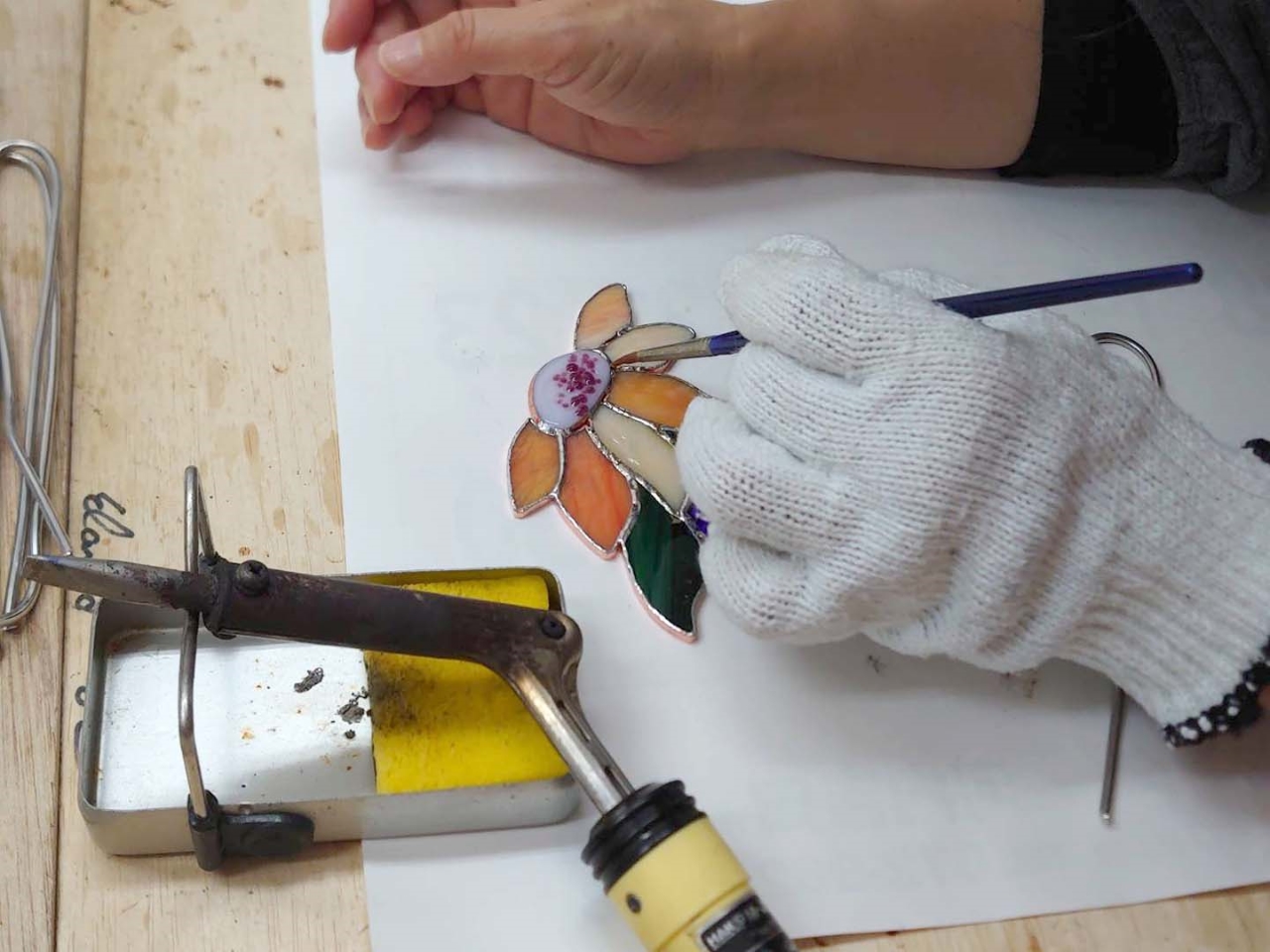 【ステンドグラス体験】お部屋をかわいく彩る、花と鳥のオーナメントをつくろう!