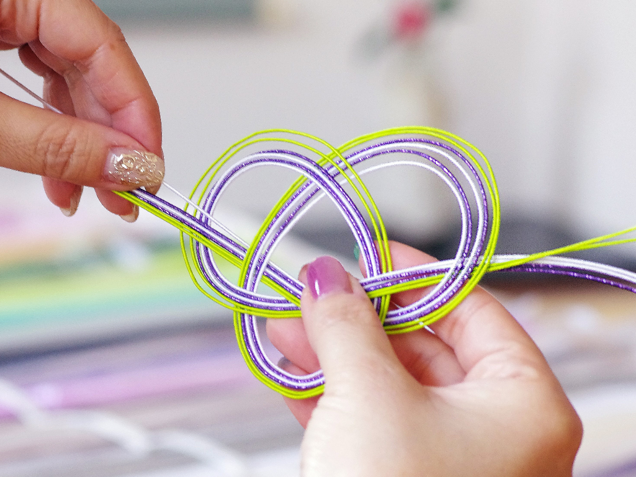 でも、水引を触ってみると、本当に柔らかく、色んな色の水引があって、色選びから楽しかったです。
