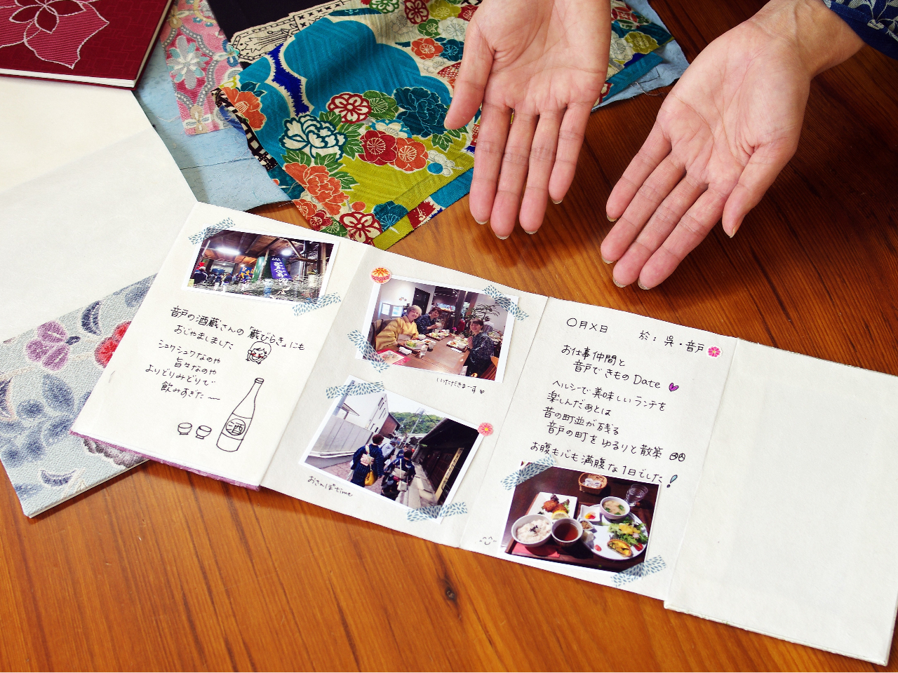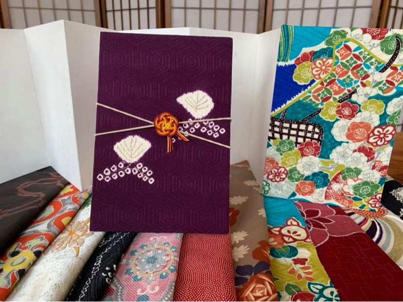 好きな着物の生地を選んで表紙をつくる体験です。