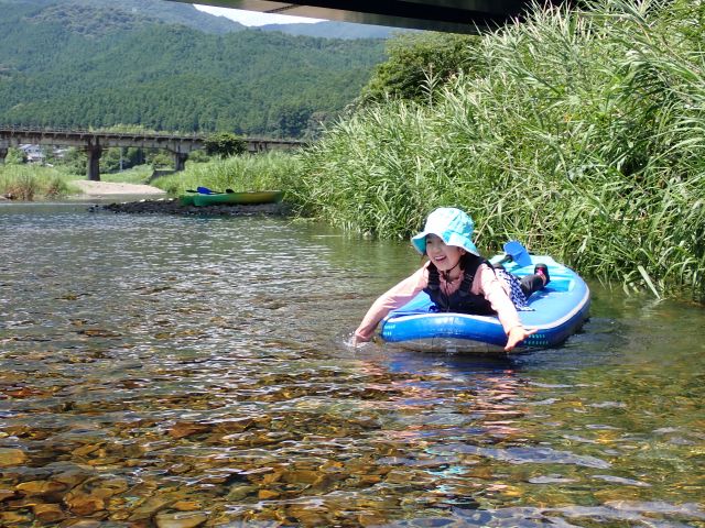 透明度の高い県南の川。水面に流れる風を感じながらのSUPは気分爽快!流れが少ない場所なので、初心者のかたでも安心です。