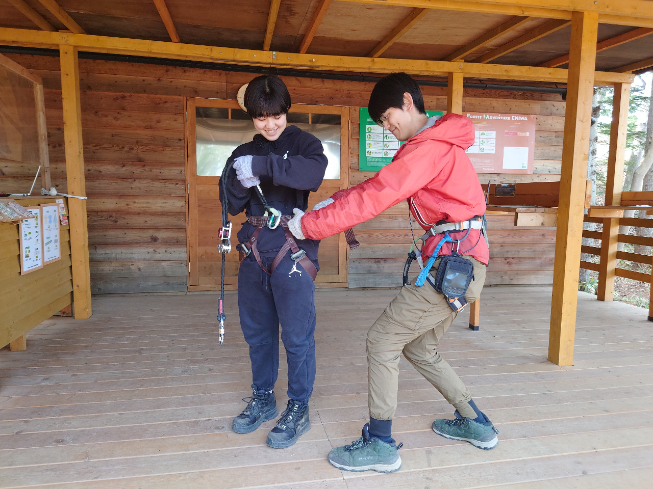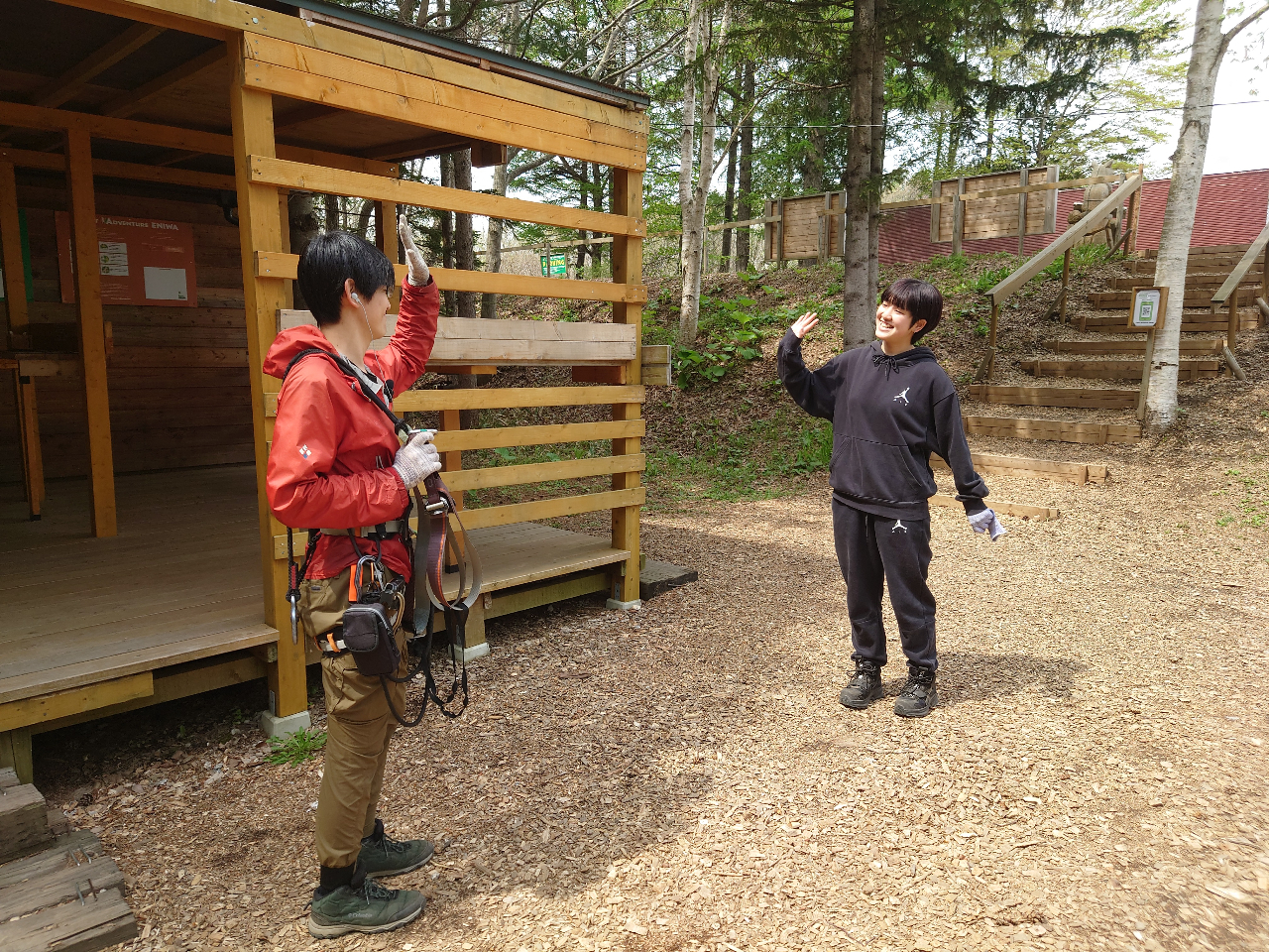 誓約書の記入やご準備が必要です。お手洗いやお着替えを済ませて、コースが利用できる状態で【20分前まで】に受付へお越しください。受付はルルマップ自然公園ふれらんど内のフォレストアドベンチャー・恵庭のパーク入口にございます。
