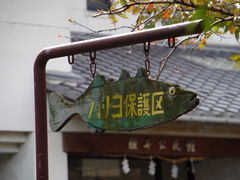 醒ヶ井駅前から徒歩にて醒井宿のある「醒井湧くわく街道」を散策。街並みを見ながら地蔵川を遡っていくと、「十王水」の標識がありました。天台宗の高僧である浄蔵法師ゆかりの水源とのことです。地蔵川の河岸には、水を汲んだりできるように「かれと」が設けられ、日々の暮らしが感じられます。また「ハリヨ」という魚が生息していて、保護地区になっています。
