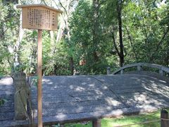 草薙館の南側にある神池にかかっている石橋です。二十五枚の敷石があるのでこの名前とのこと。こちらは橋を保護する手段を講じたうえで中央部分が通行可能になっています。