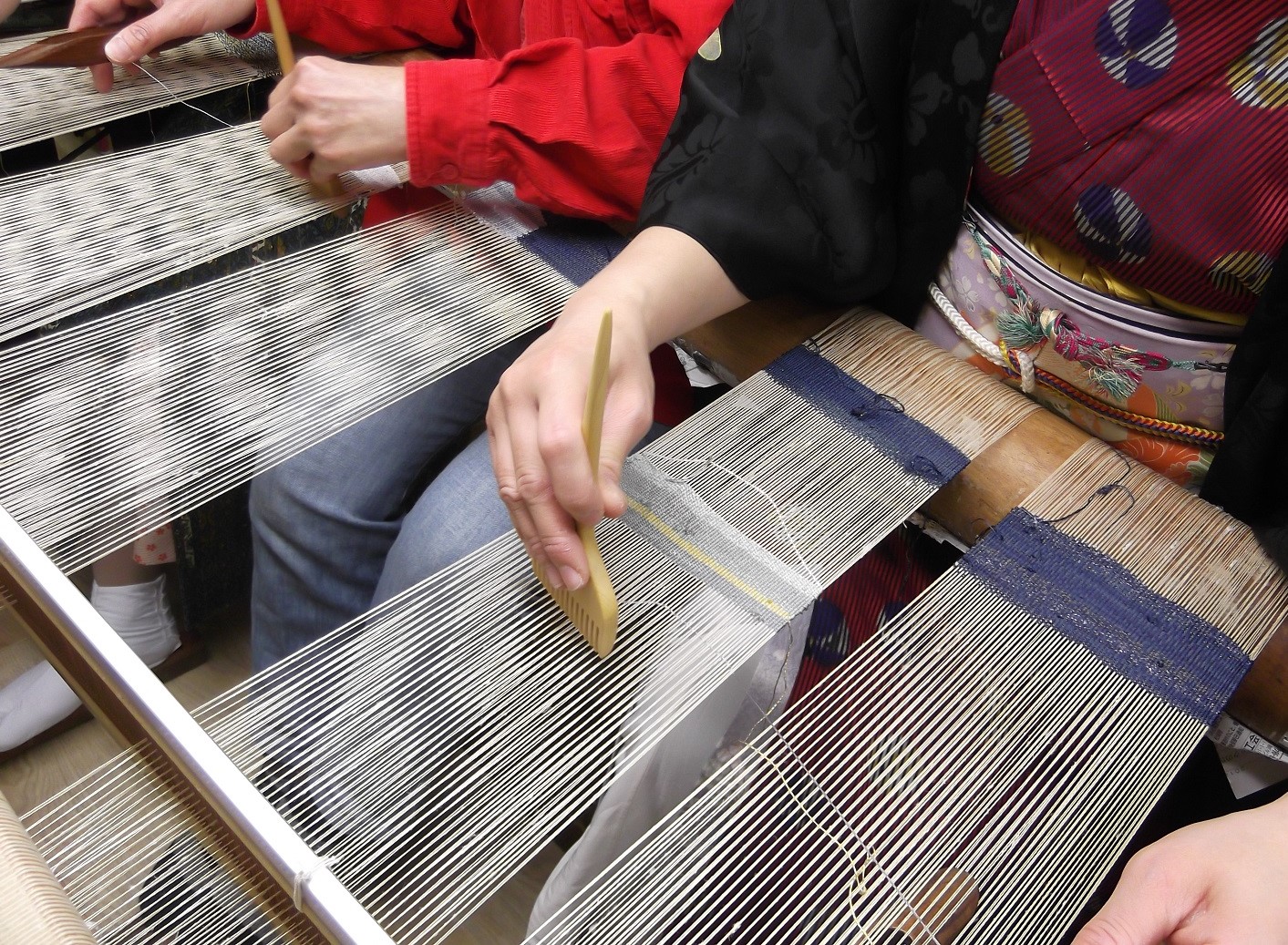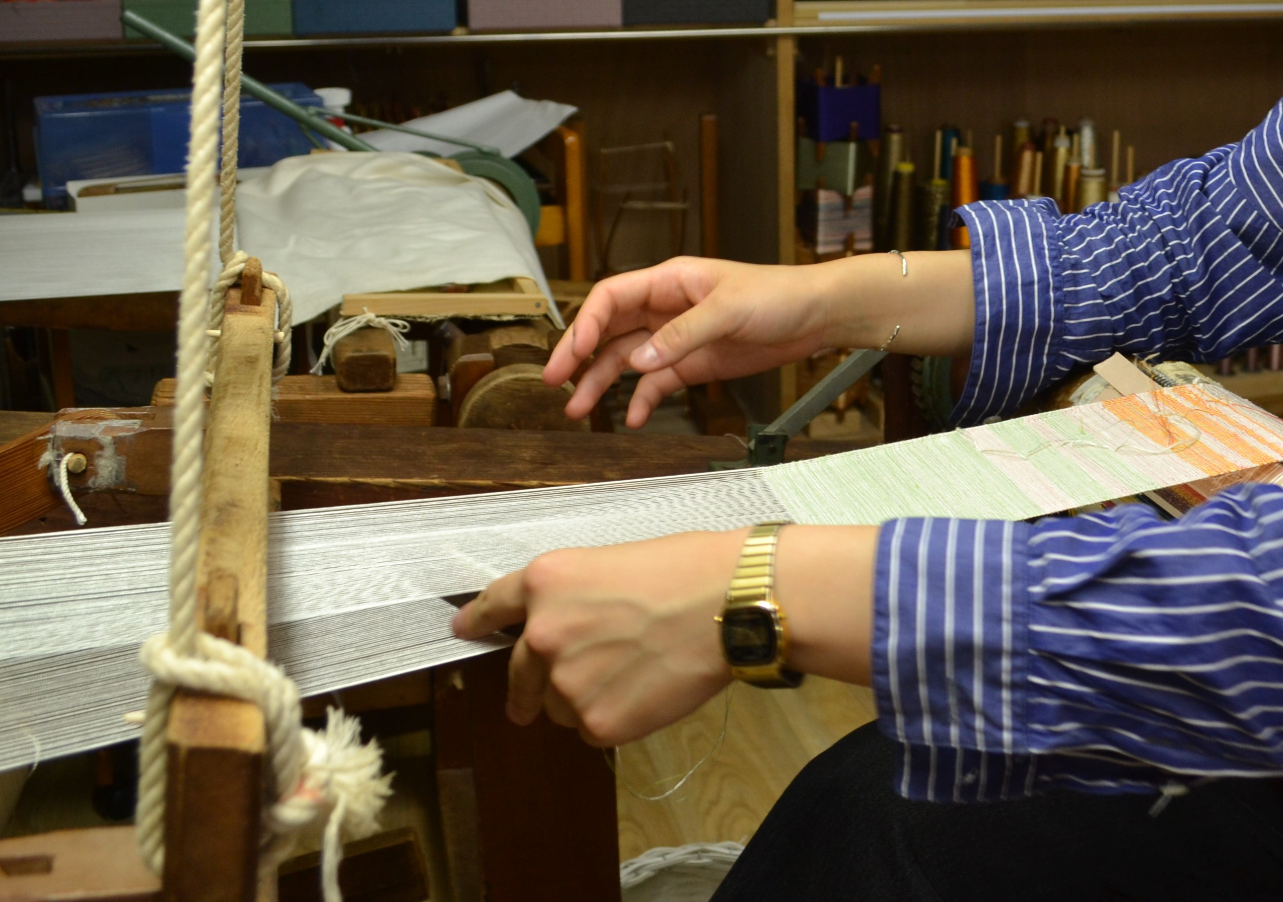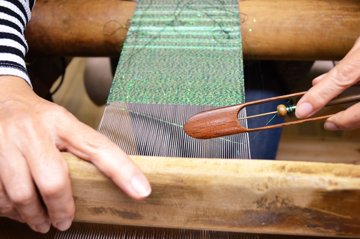 ▼古くは飛鳥時代に日本に伝わったといわれる「西陣・綴織(つづれおり)」