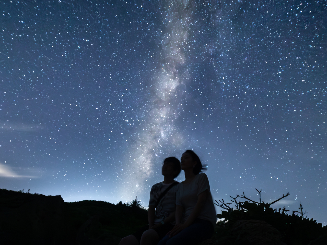 天候が良ければ天の川・満天の星空、時期が合えば流星群や流れ星も楽しめます。