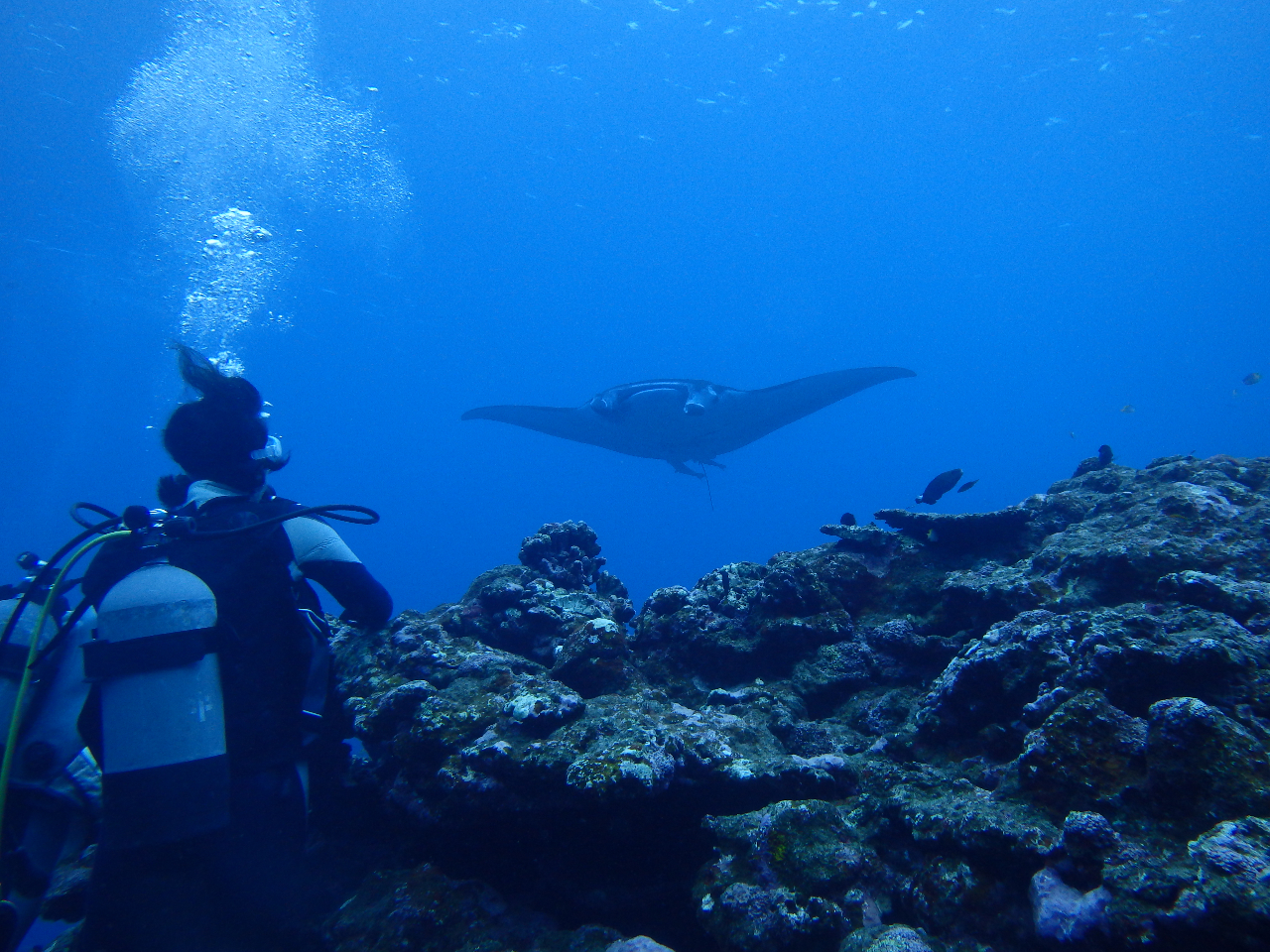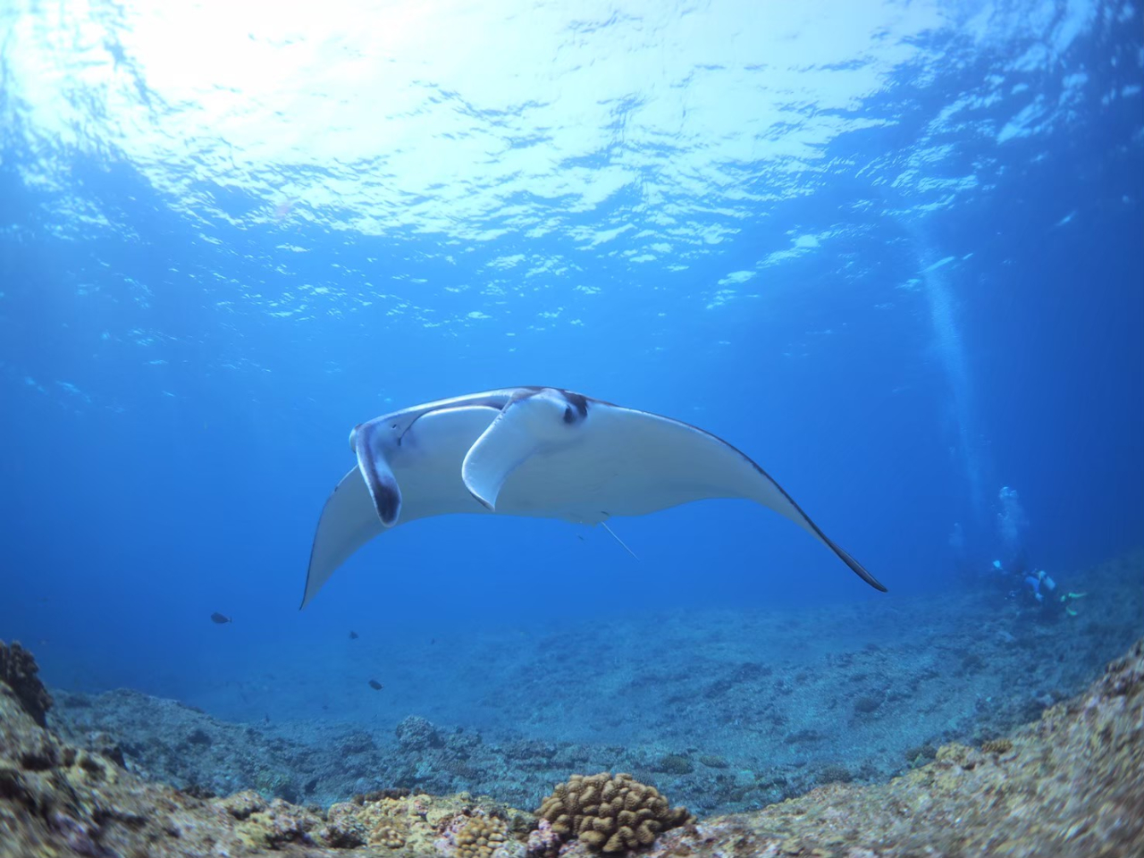 ダイビングならマンタやウミガメに間近で会う確率がぐっと上がります。スキューバダイビング