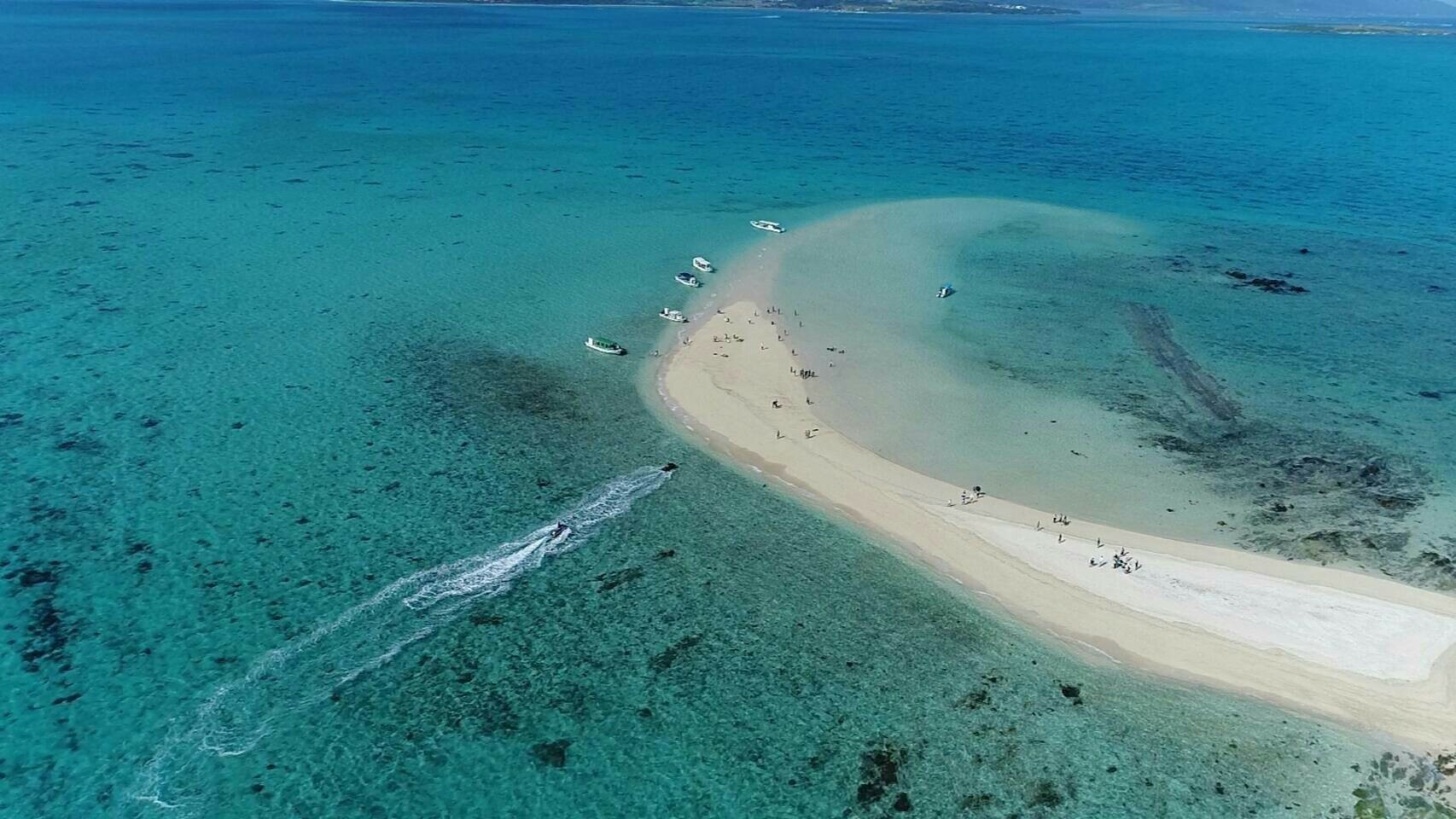 ・幻の島は三日月形の無人島で、潮が引いている時だけ姿を見せる幻の島‥★シュノーケリング・ボートシュノーケル