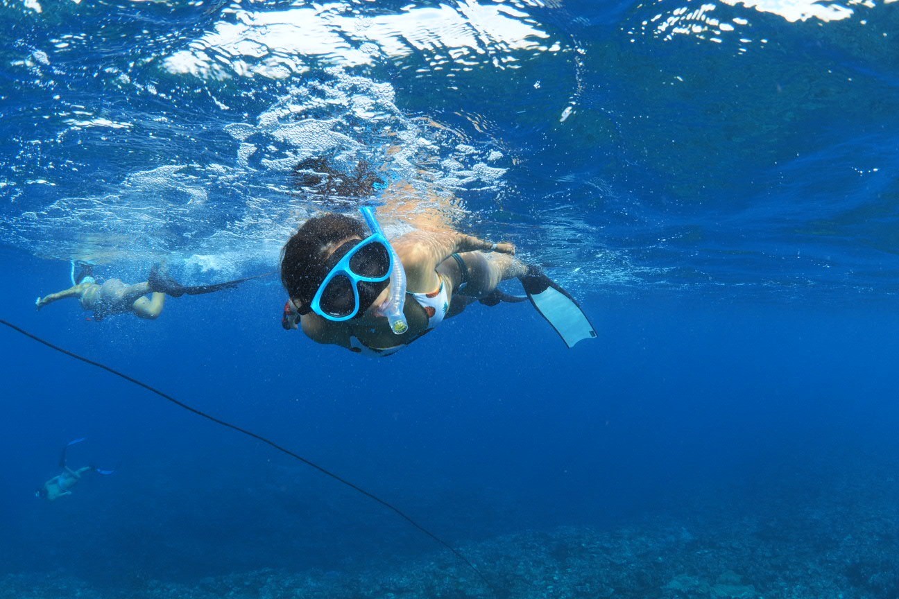サンゴ礁シュノーケリングを少し楽しんだ後に体験ダイビングを楽しめます。