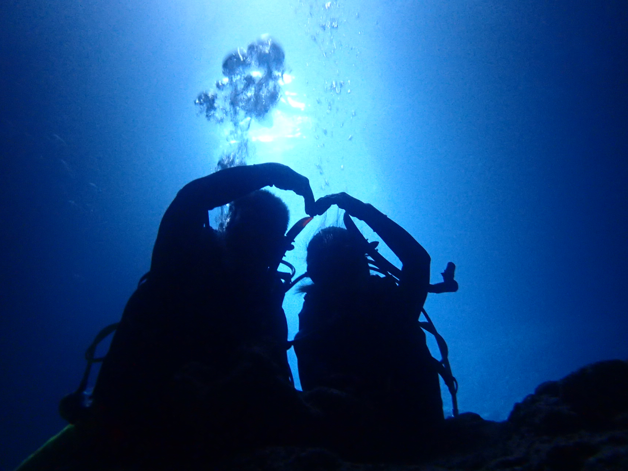 シュノーケリングとは違い海の下から水面を見上げるとキラキラと光る海が広がっています。