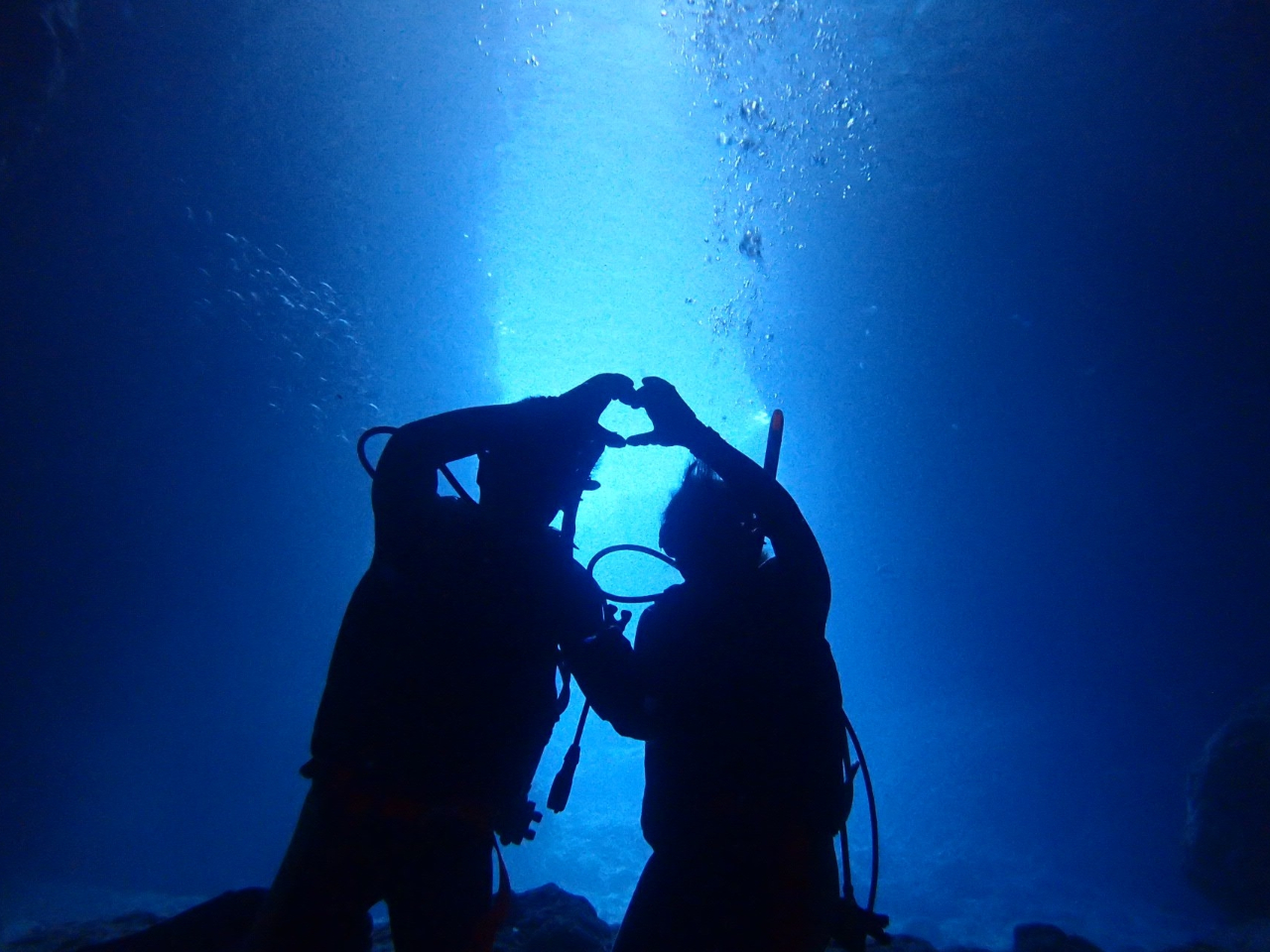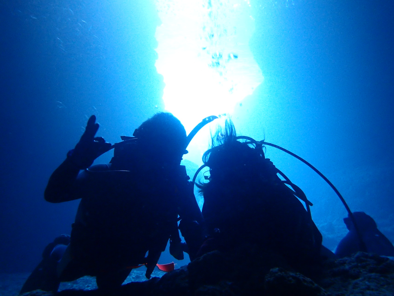 シュノーケリングとは違い海の下から水面を見上げるとキラキラと光る海が広がっています。