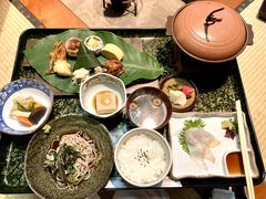 とても丁寧に少しづつ盛り付けられたざいご料理は目にも下にも楽しめるものでした。テレビで見て気になっていたネギ味噌の天ぷらもあってうれしかったです。 飛騨牛の陶板焼きは味噌が添えられてあり 飛騨は味噌味の料理が多いのだな と思いました。
