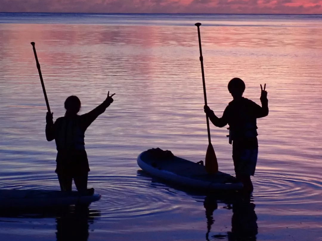 ◆期間限定5〜10月【サンライズツアー|SUP&シュノーケル】一組様の貸し切りツアー!★宮古島の朝日を見ながら海上散歩★お一人様よりご参加可能!★写真データ付き!