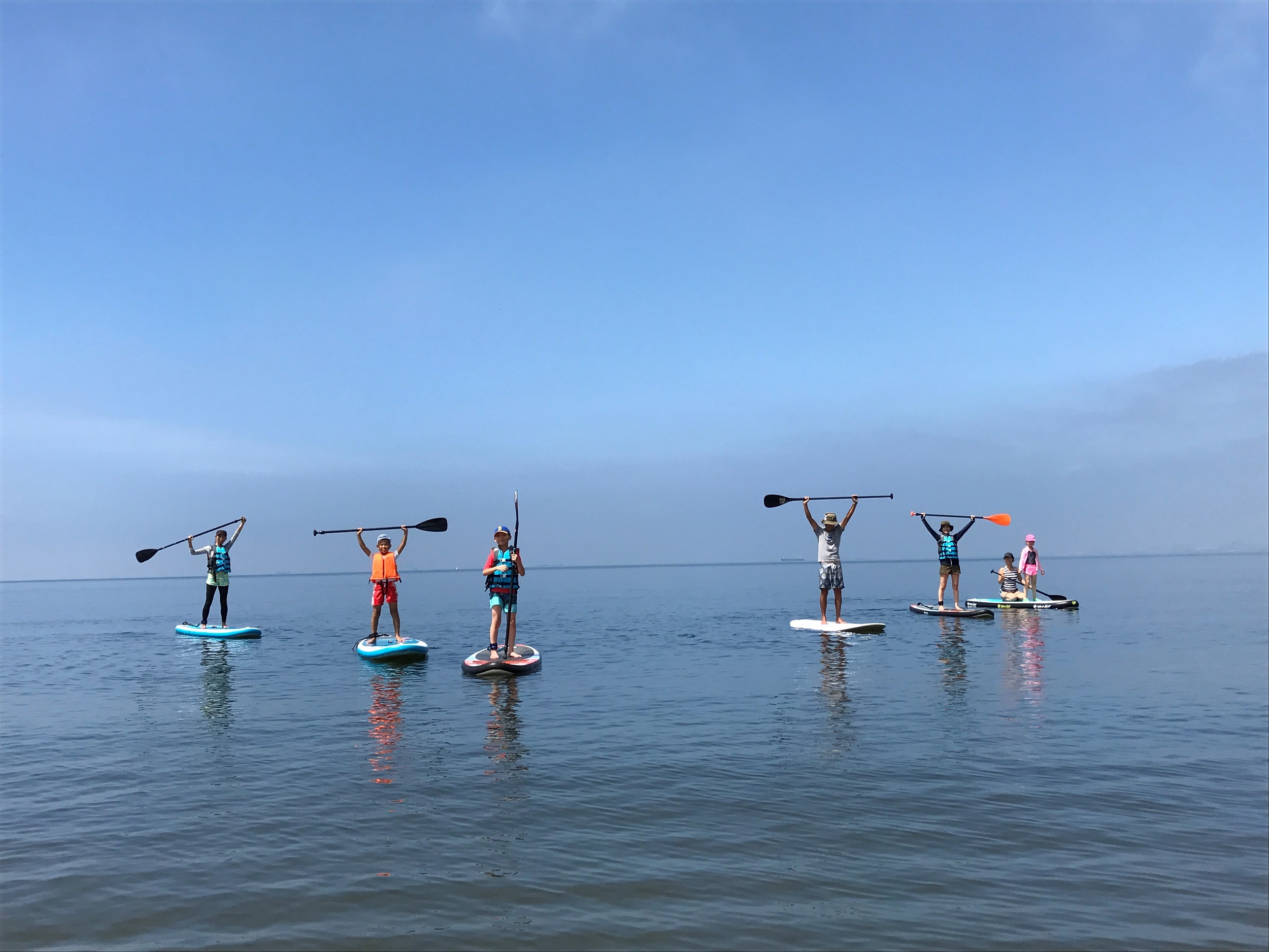 SUP体験は波のない水面で開催するので、泳げない方やお子様でもライフジャケットを着用して