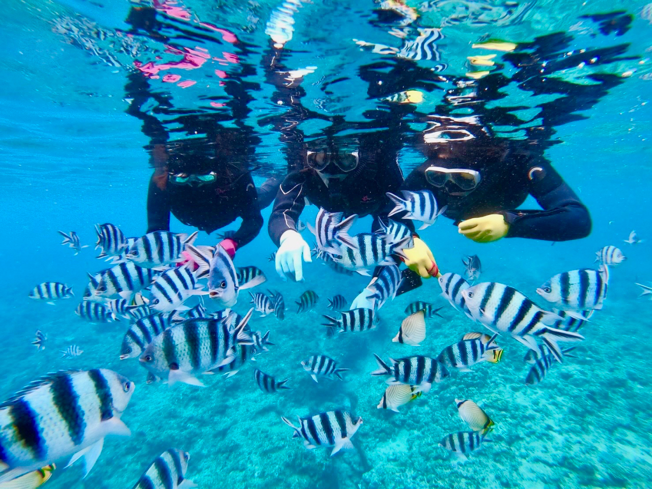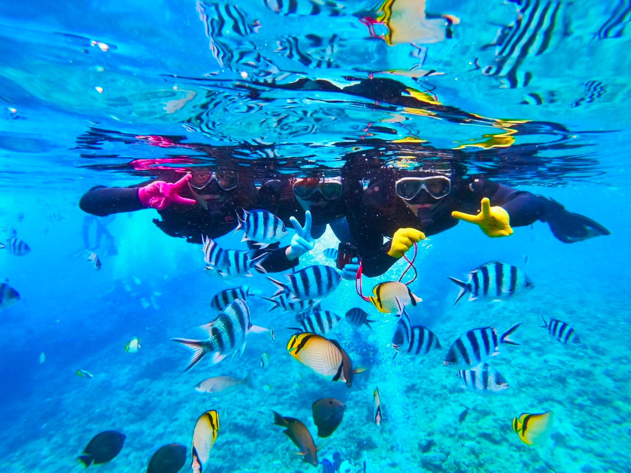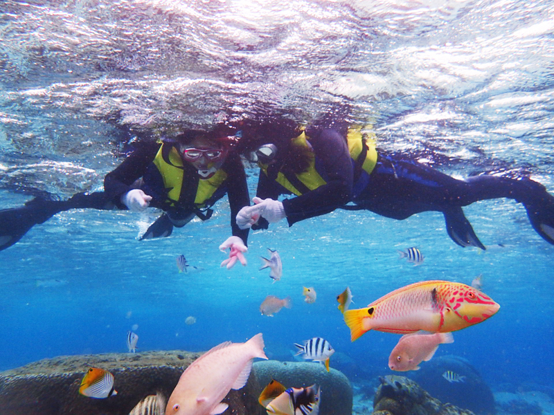 【沖縄・北谷・サンゴ礁・シュノーケル】サンゴ礁と熱帯魚の餌付け満喫!大人気GoPro写真&動画無料!口コミ&写真満足度No1