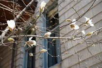 ホテル長楽館 新館の前庭で、こぶしの花が咲き始めました。