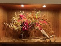 本日のお写真はこちらです。この度のホテルラウンジのお花は、9月の別名、いろどり月にふさわしい、彩り豊かな作品となっております。京都も先日より涼やかな気候となり、秋めいてまいりました。