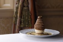 和栗とコーヒーが織りなす、毎年人気の一皿。サクサクのメレンゲとほろ苦い自家製アイス、濃厚な和栗クリームが重なり合い、贅沢な余韻が広がります。