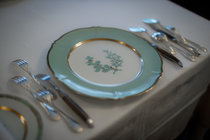 フレンチ【ル シェーヌ】のテーブルを彩るショープレートは、大倉陶園によるオリジナルデザイン。
