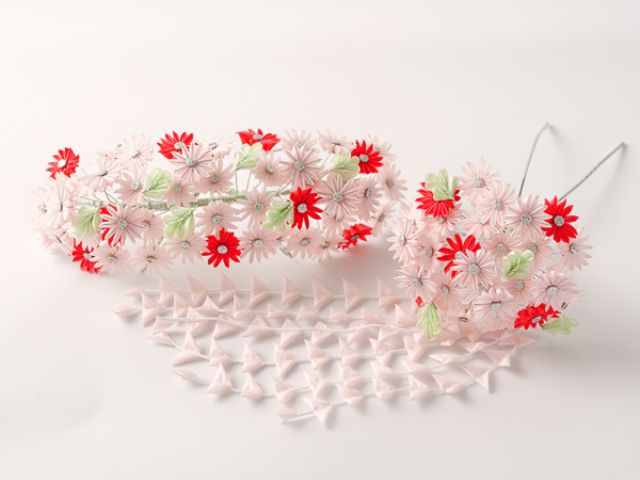 舞妓さんや芸妓さんの帯には西陣織、花魁の掛けには総刺繍、染めは京友禅などそれぞれのこだわりを大切に守って一から作っております。