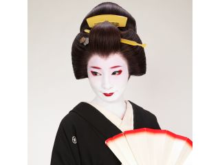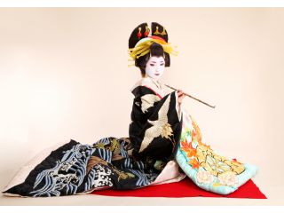 しっとりとした紺や紫、黒紋付きの着物に壮麗な帯で粋な装い。メイクは舞妓より一層華やかに、凛とした大人の美しさです。