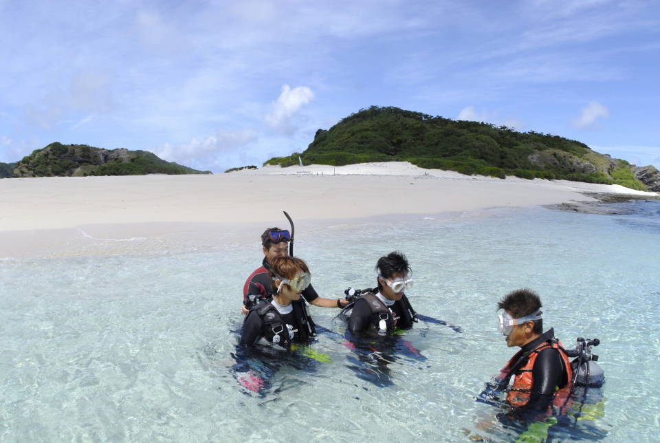 無人島の近くや古座間味ビーチでの体験ダイビングになります。