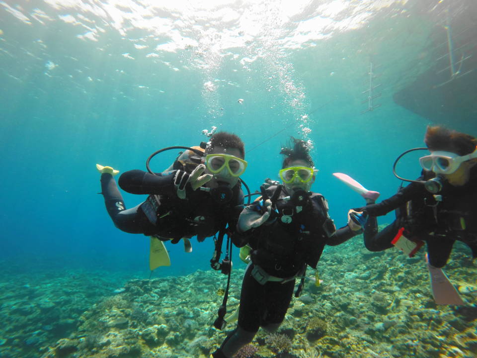 ダイビング終了後は、そのままビーチか無人島でシュノーケルをするもよし、