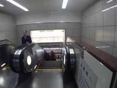 歩道から入ると直ぐに乗れる、下りエスカレーターは、