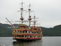 ゴンドラを下車した桃源台駅から元箱根港まで、海賊船に乗りました。たまたまこの船は箱根町港行きで、すぐ隣に停泊していた海賊船に乗り換えでいきました。きちんとした案内がなかったため、直前までわからず、あわてて乗り換えました。