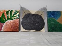 ボタニーペインティング特殊加工した本物の蓮の葉を貼ってアクリル絵の具で着色創作時間は約3時持ち物無し!出来上がった作品はその場でお持ち帰り頂けます