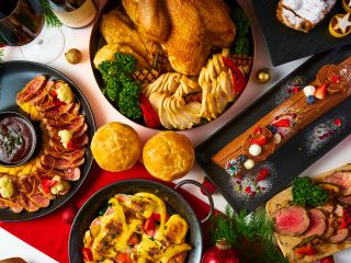 世界のホリデーメニューが並ぶ豪快で贅沢なクリスマスブッフェ。ローストターキーやハニーグレイズハム、和牛ローストビーフ、ラムレッグなどが香りと迫力で“食べる歓び”を呼び起こします。