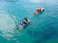 全てが透明のクリアカヤック体験付き!!!シュノーケル体験もセットになったシーカヤックツアーです。小さなお子様からご年配の方まで、どなたでも気軽にご参加いただけます。