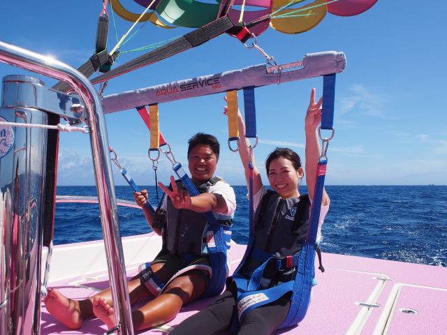 その他 大雨や強風の影響で安全にパラセーリングを行うことが出来ないと判断した場合は中止となります。 |