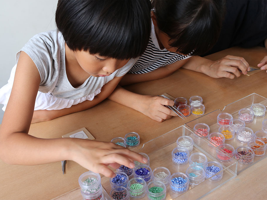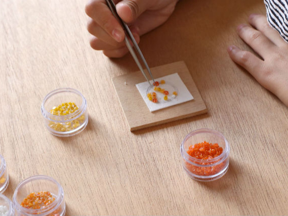 ピンセットを使います。使うのが難しいお子様や4歳以下の方は保護者様のお手伝いをお願い致します。