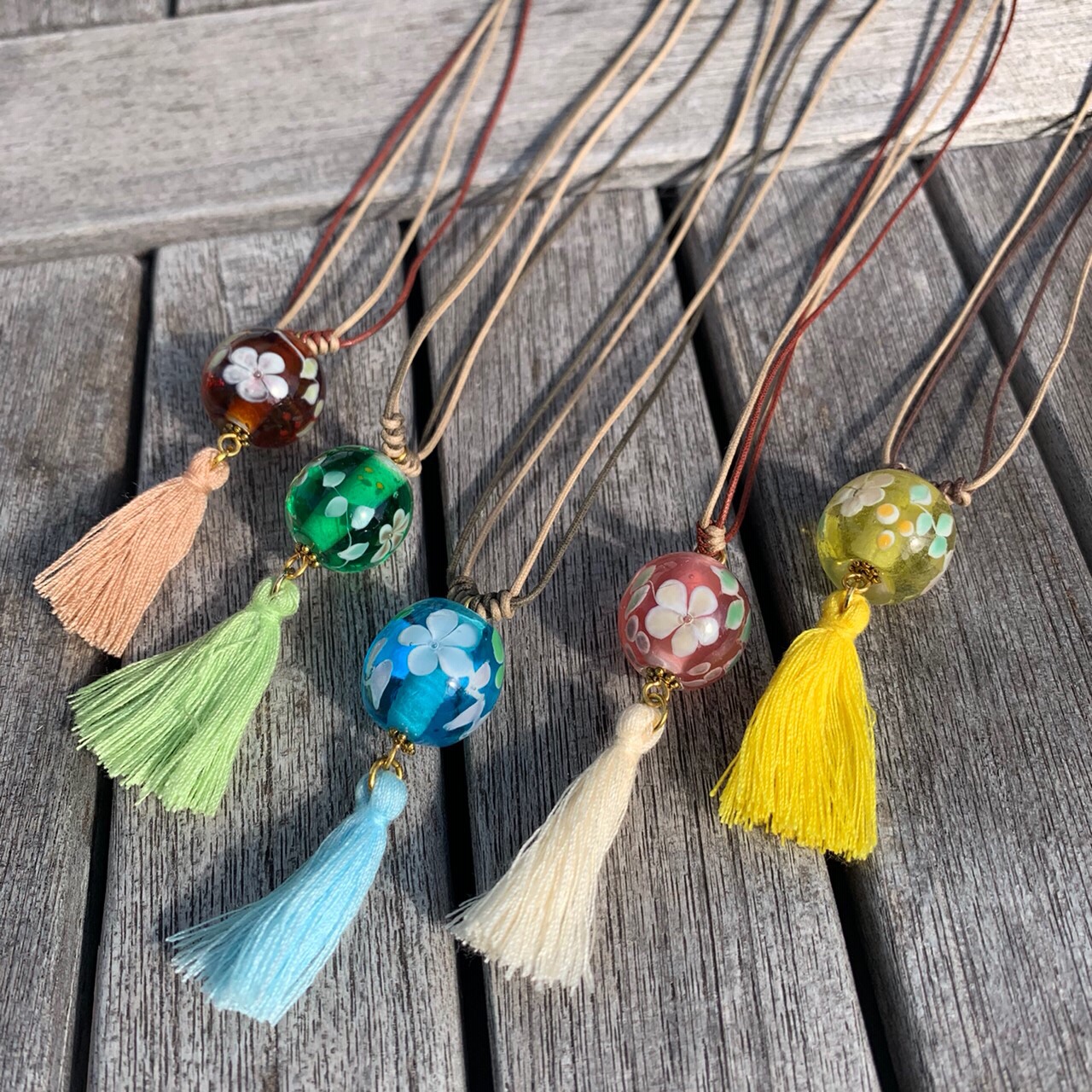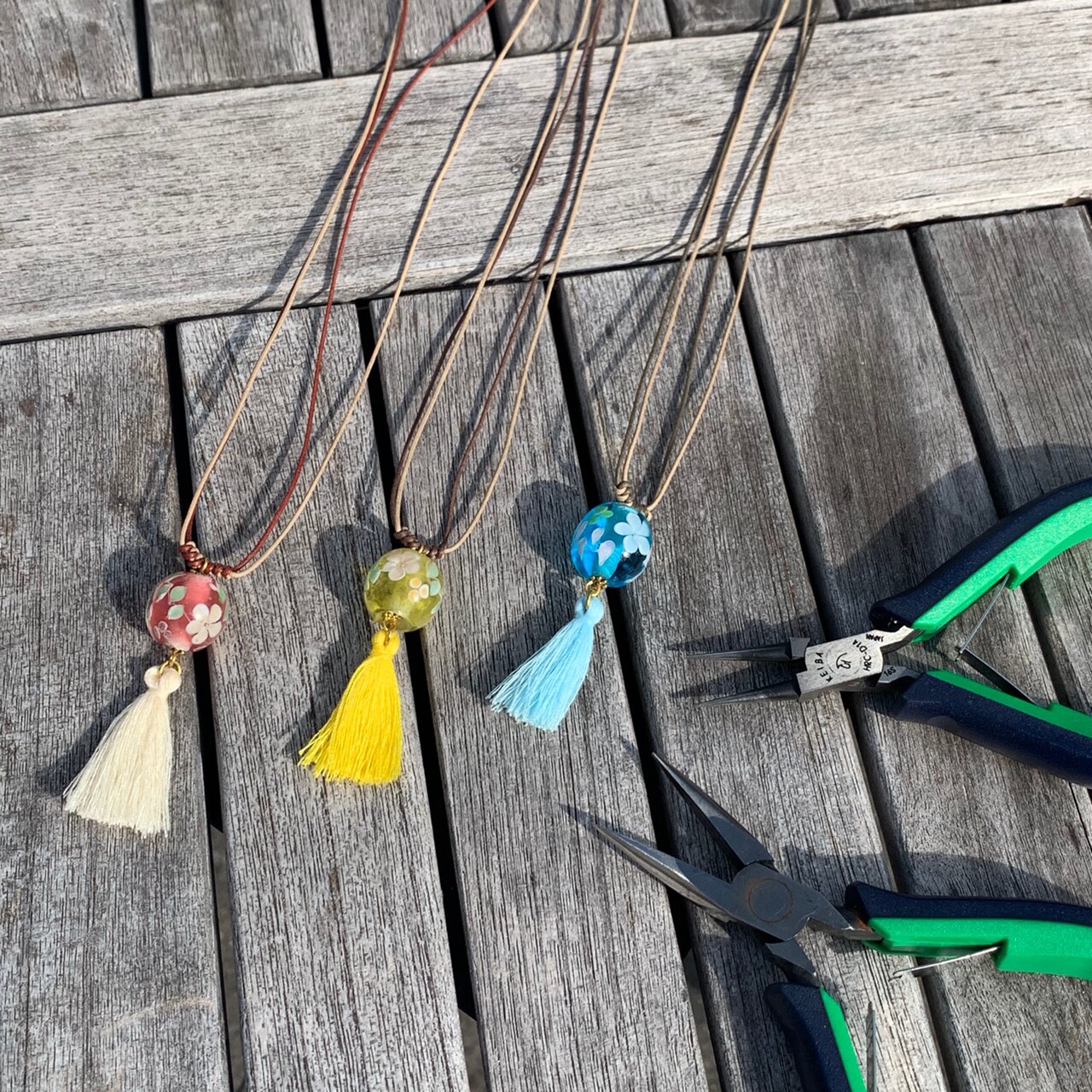【名古屋】お花柄のとんぼ玉でネックレス作り体験〜とんぼ玉とタッセルを組み合わせたアクセサリー〜女子会、カップルの思い出作りに♪