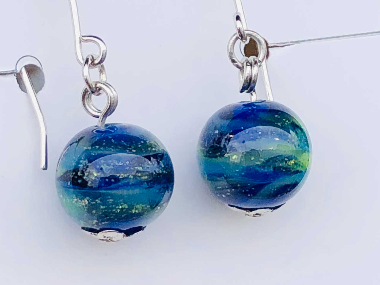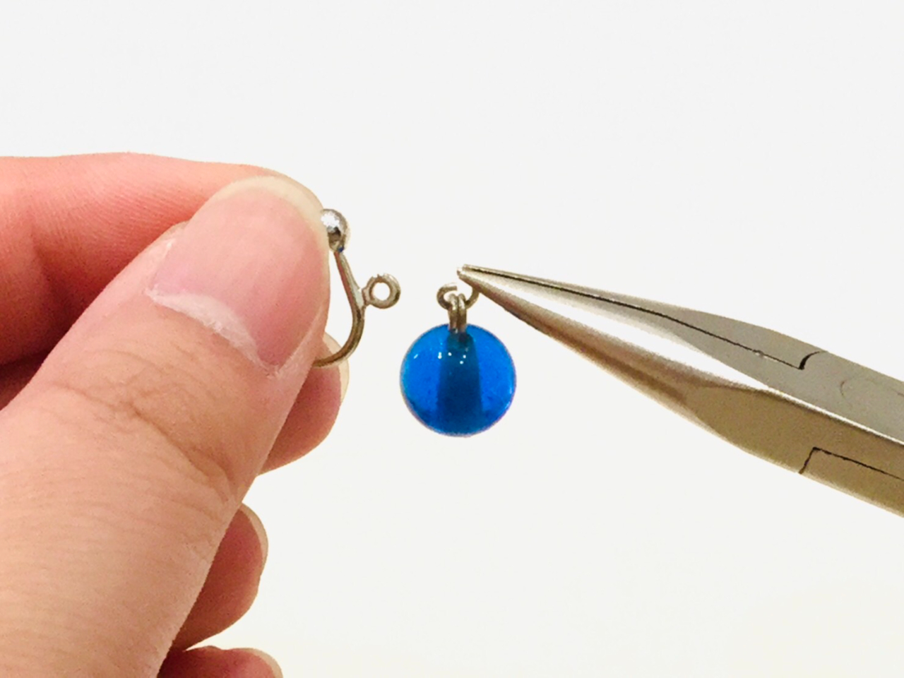 ◎小さなとんぼ玉を作り、ピアスかイヤリングに仕立てます