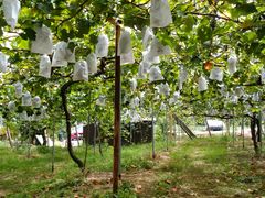 試食の巨峰を食べていざ巨峰狩りへ。印象としては1房がそんなに重くないので、たくさん収穫したいお子さんにはぴったりかなと思います。1kgがだいたい2〜4房くらいになるので大きいものを選ぶとすぐに予定重量をオーバーしてしまうので要注意です 笑