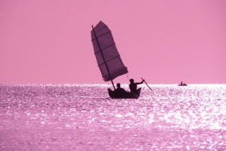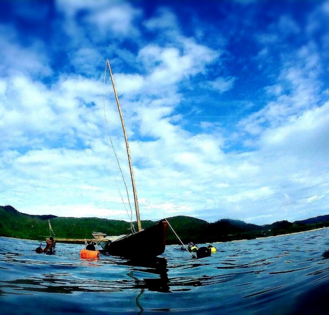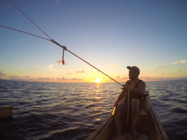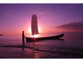 サンセットの時間に合わせて、サバニでクルージングするツアーです。