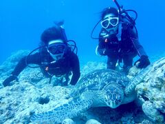 ウミガメに会いたくて、今回の体験ダイビングをお願いしたのですが、ちゃんと会えました!