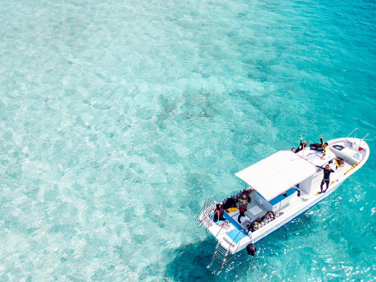 伊良部島の港から毎日出発、ポイントまで最短5分の近さ、船酔いが気になるゲストも安心、海中一面に広がるサンゴ礁を見にいきましょう!熱帯魚が乱舞するスノーケリング天国へGO♪水中撮影無料サービス!!