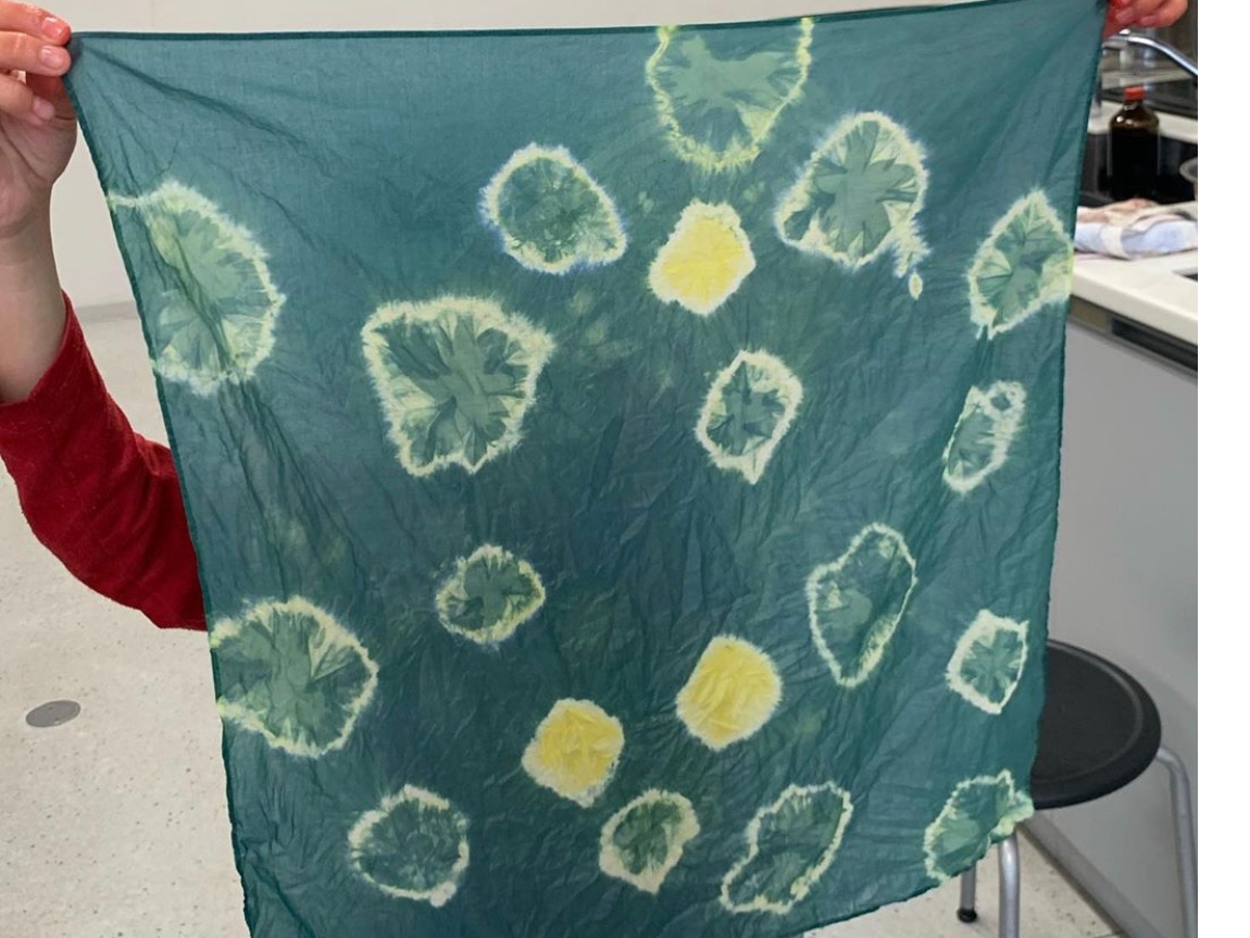鍋にハンカチを入れるタイミングや時間・動きで、生地に入る色具合が変わっていくのはとても面白かったです。