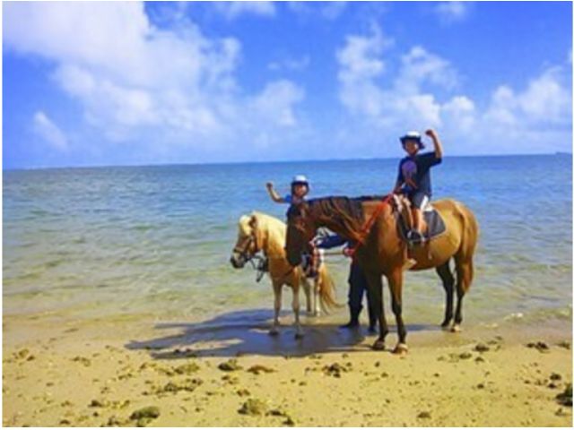 浜辺を馬に乗ってゆっくりお散歩します。沖縄ならではな特別な時間をご体験ください♪