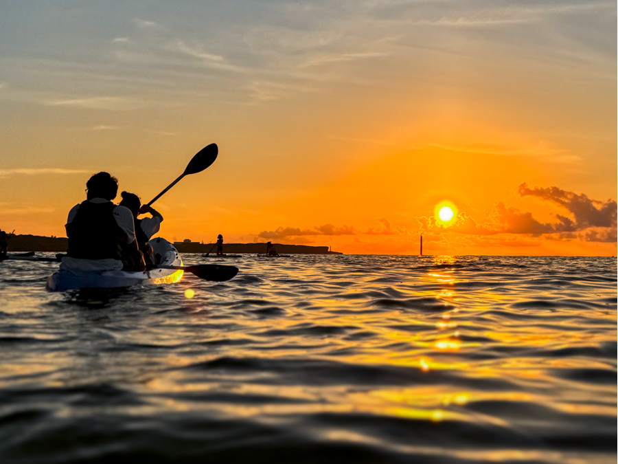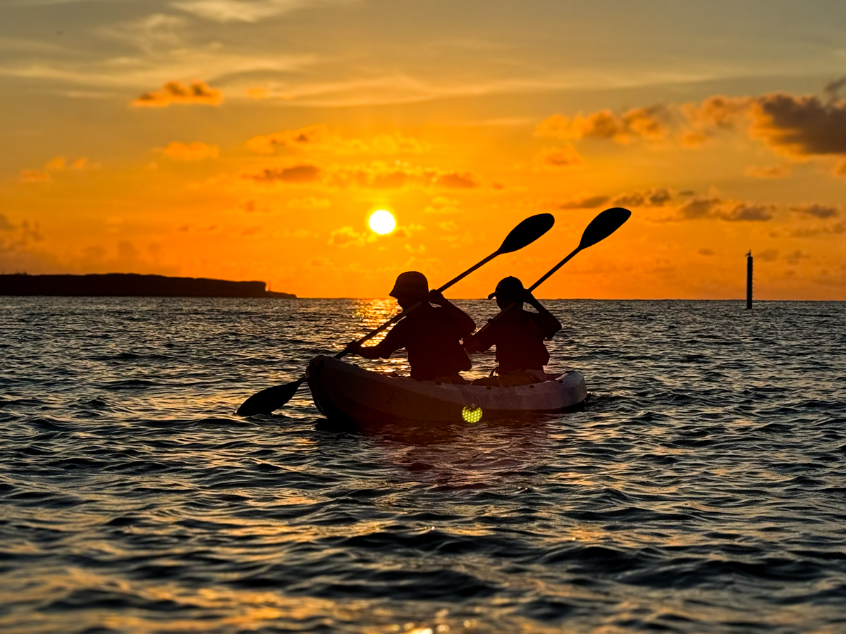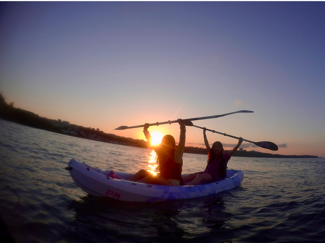 恩納村【サンセットシーカヤック】沖縄の夕日に癒される|カップル・女性に人気|レンタル品・駐車場・温水シャワー・ドライヤーすべて無料