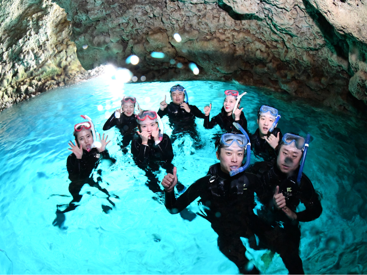 ・青の洞窟 とクリアな海、カラフルな熱帯魚とサンゴ礁 を一度に楽しめるシュノーケリングプラン。自然の光でライトアップされた青く光る洞窟とサンゴ礁やトロピカルフィッシュの海は沖縄での一番の思い出になりますよ♪