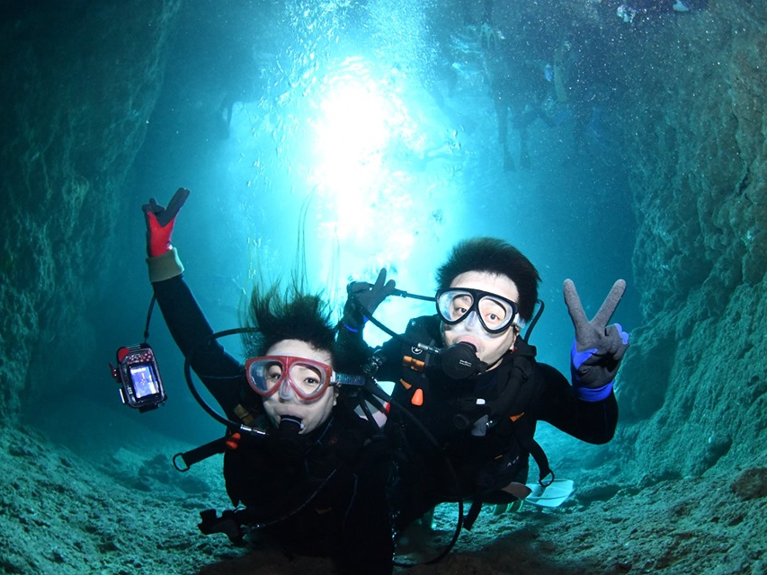 青の洞窟体験ダイビング|Gopro写真動画【無制限撮影は当店だけ】・シャワー・ドライヤー・駐車場すべて無料!安心快適の店舗集合|1組貸切制